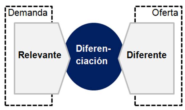 De la confluencia de la demanda (qué es relevante para los consumidores) y de la oferta(qué podemos, de forma realista, hacer diferente a la competencia) obtendremos el o los atributos para diferenciar nuestros productos.